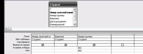 Рис. 1.1. Вид простого запроса на выборку в режиме конструктора