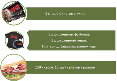 В течение 5 недель покупателям будет доступно новое предложение – комбо набор «Крепкий Орешек». Приобретая данный набор, покупатель получает возможность принять участие в розыгрыше призов – от саба 15 см до главного приза – поездки в Нью-Йорк на двоих.