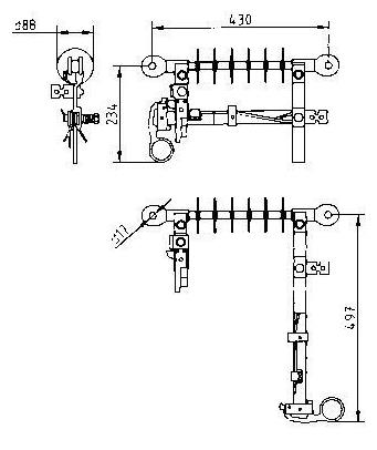 Рис.7 Концевая траверса. Переход КЛ-ВЛ. Использование ОПН.