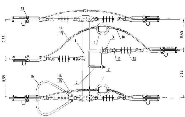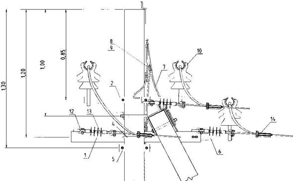 Рис.8 Промежуточная опора. Крепление посредством двух анкерных зажимов.