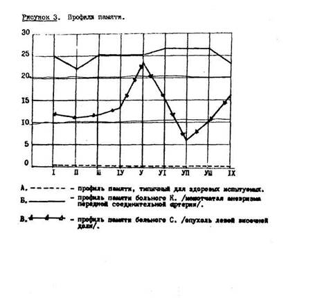 Вторым аспектом анализа профилей памяти является исследование характера нарушений мнестической ' функции.
