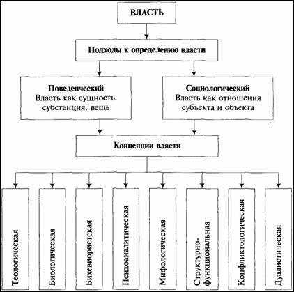 · Поведенческий. Сторонники этого подхода объясняют природу власти психологическими и биологическими особенностями человека как ее носителя. Носитель власти – отдельная личность, особенная личность, заставляющая повиноваться других людей (теологическая, биологическая, бихевиористская, психоаналистическая, мифологическая).