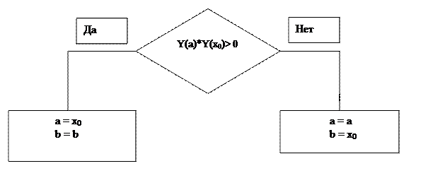 Шаг 2. Поскольку Y(a) и Y(x0) имеют одинаковый знак, то согласно блок-схеме на рис. 9, a = x0, b = b.