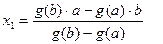 Шаг 3. Вычислим значения Y(a), Y(b), затем x1 по формуле (5) и Y(x1). Отметим, что │Y(x1)│ < │Y(x0)│.