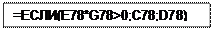 В колонке A указывается номер итерации I, в ячейках AB78и D78 - границы промежутка локализации корня [a,b], в колонках E,F,G – значения функции Y в точках a, b, xi соответственно, в ячейках B80, C80 и ниже в этих колонках записывается условный оператор, соответствующий блок-схеме на рис.9. В колонке H вычисляется длина отрезка [Xi-Xi-1] на каждом шаге.