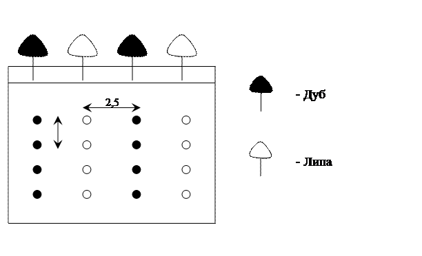 Рис. 2 Схема смешения и размещения древесных пород на лесокультурной площади