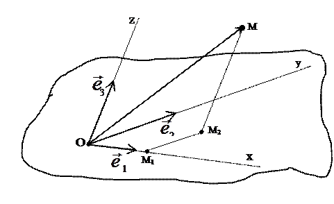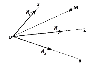 линейно зависимы, поэтому они компланарны. Это означает, что точка М лежит в плоскости Оху. Из предыдущего равенства следует, что в плоскости (Оху) т. М в системе координат (О