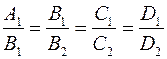 1) α = β <= > А1, В1, С1, D1 и А2, В2, С2, D2 - пропорциональны, то есть: