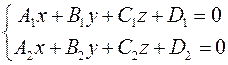 Для определения координат направляющего вектора прямой, заданной уравнениям (19), заметим, что направляющий вектор прямой параллелен как плоскости α, так и плоскости β. Это означает, что координаты направляющего вектора прямой должны являться решением системы уравнений