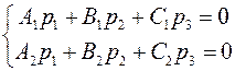 Выделив р3 в качестве свободного неизвестного, используя правило Крамера, получим решение системы уравнений (20) в виде: