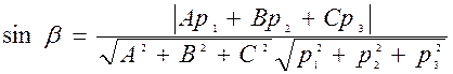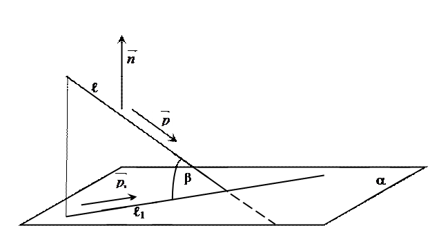 − угол между направляющим вектором прямой ℓ и вектором нормали к плоскости a, то есть