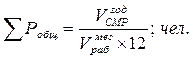5. Определяется общее количество рабочих (∑Робщ) необходимое для выполнения годового объема СМР исходя из выработки одного рабочего по формуле: