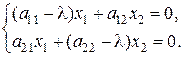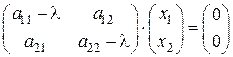 Матричное уравнение (А − λ Е) Х = 0 имеет развёрнутую форму: