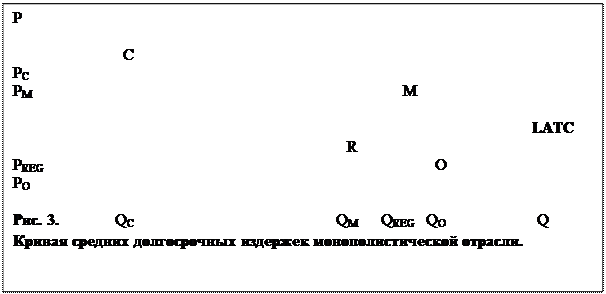 Вместе с тем проведение антимонопольной политики сопряжено с рядом объективных трудностей. Чтобы понять их происхождение обратимся к рис.3, на котором изображена типичная кривая долгосрочных издержек монополистической отрасли (LATC).