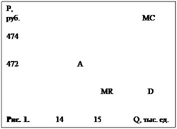 Мы предположили, что 1 тыс. ед. своей продукции монополист может продать по цене 500 руб. В дальнейшем при расширении сбыта на 1 тыс. ед. он вынужден каждый раз снижать ее цену на 2руб., поэтому предельный доход сокращается на 4руб. при каждом расширении объема продаж. Фирма будет максимизировать прибыль, производя 14 тыс. ед. продукции. Именно при таком объеме выпуска ее предельный доход в наибольшей степени приближен к предельным издержкам. Если она произведет 15 тыс. ед., то эта дополнительная 1 тыс. ед. больше добавит к издержкам, чем к доходу, и тем самым уменьшит прибыль.