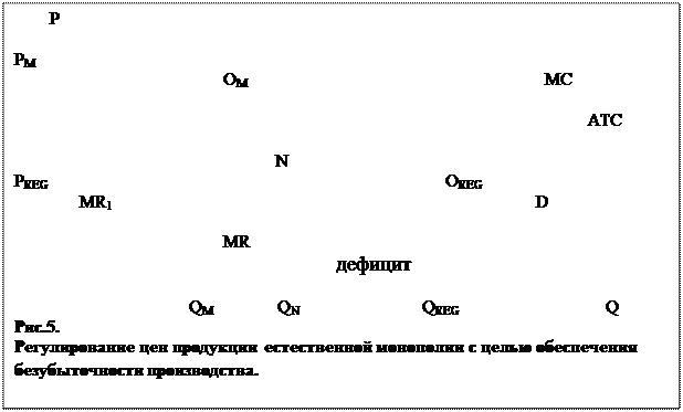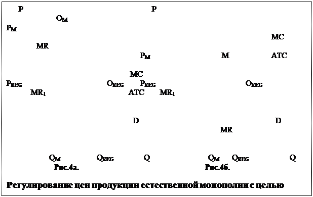 На рис. 4 показан распространенный вариант регулирования, при котором наивысшая допустимая цена закрепляется на уровне пересечения предельных издержек с кривой спроса (Р=МС=D).