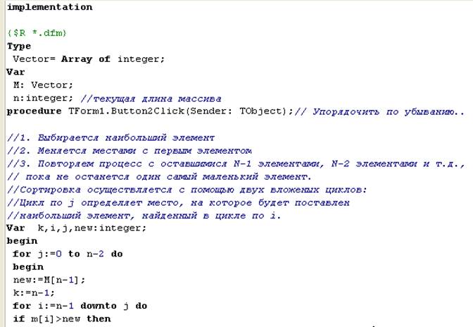 Пример Дан массив целых чисел. Упорядочить числа по убыванию.