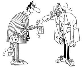 3. Но! Здесь еще важно, Вы выходите на своего собеседника или он на Вас? Какую организацию представляет Ваш собеседник, в какой он должности? Одно дело, если он выходит на Вас с коммерческим предложением или предложением о сотрудничестве, представляя коммерческую организацию, либо если с подобным предложением на кого-то выходите Вы. Тут «щеголять» в обносках и сшибать собеседника с ног зловонным дыханием совершенно неуместно. И совсем другое дело, если Ваш собеседник – сотрудник налоговой или милицейский начальник. Тут и запах перегара можно потерпеть ради дела.