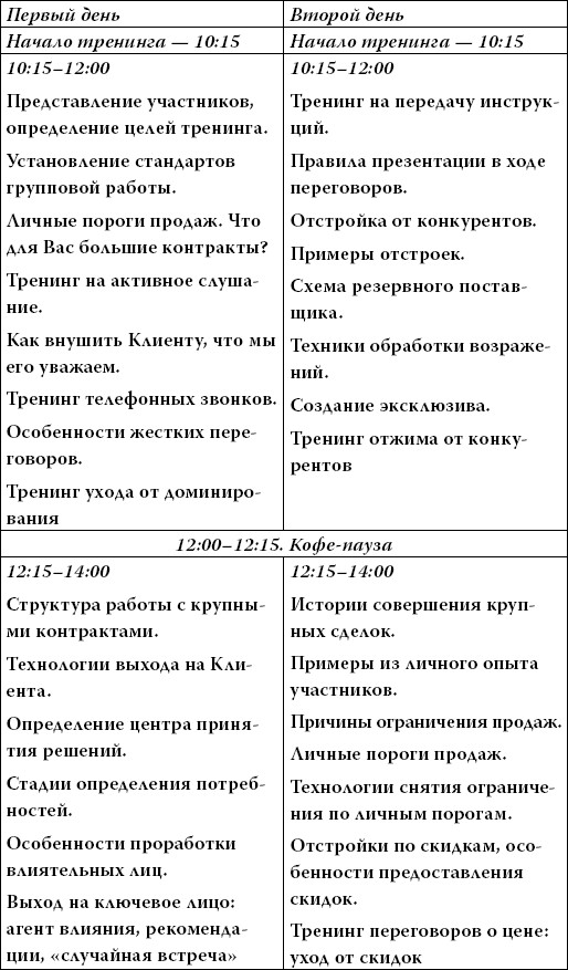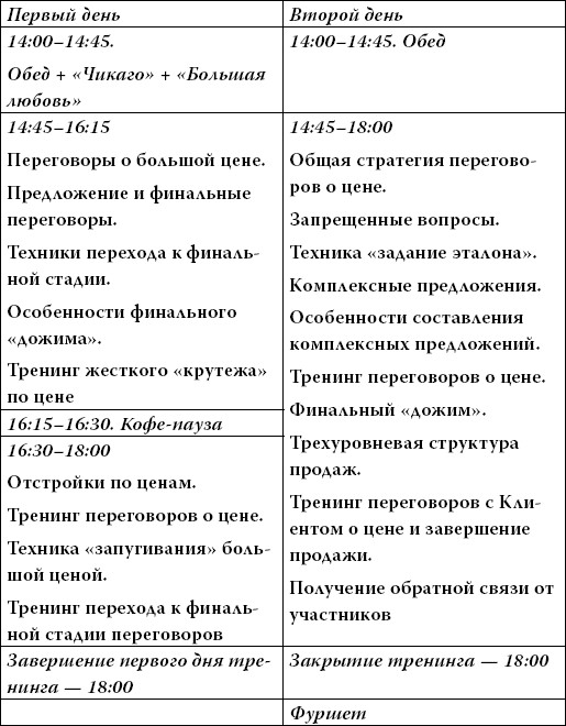 План проведения тренинга «Большие контракты. Финальные переговоры о цене»