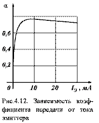 от тока эмиттера и др. Реальные характеристики транзистора, которые можно снять экспериментально с помощью схемы, приведенной на рис.1.1, показаны на рис.4.11.