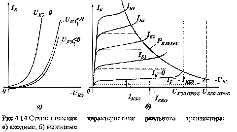 На рис.4.14 приведены реальные статические характеристики транзистора, включенного с ОЭ.