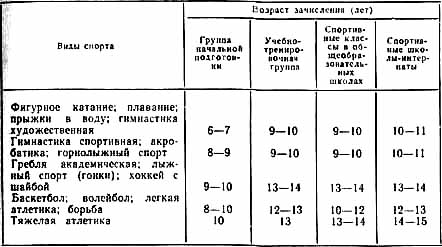 При проведении физических упражнений с детьми младшего школьного возраста на уроках физической культуры и в спортивных секциях учитываются необходимость смены упражнений, исключения однообразных движений, очень ограниченное использование силовых напряжений, неблагоприятно влияющих на сердечно-сосудистую систему и дыхание. Сроки начала тренировочных занятий детей разными видами спорта различны (табл. 23).