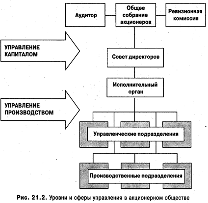 Действующее законодательство об акционерных обществах предусматривает трехзвенную систему управления, включающую общее собрание акционеров, совет директоров (наблюдательный совет) и исполнительный орган (рис. 21.2).