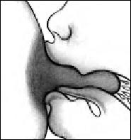 Бутылочка не только психологически расстраивает мать. Существуют несколько основных механических различий между сосанием груди и бутылочки, поэтому, если ребенку давать бутылочку, то часто это заканчивается тем, что создаются условия, препятствующие грудному вскармливанию, известные как путаница с сосками. (Для некоторых детей, может быть, лучше было назвать это предпочтение сосков. Они не путают, они просто запоминают резиновый сосок и предпочитают его. Матери же предпочитают, чтобы дети выбирали их собственный сосок.) Дети сосут материнский сосок совсем иначе, чем резиновый. Когда ребенок берет грудь, он широко открывает рот и всасывает сосок груди и ткани околососкового кружка глубоко. Язык ребенка удерживает ткани груди, прижимая их к верхнему небу и образуя желоб под соском и околососковым кружком. Нижняя челюсть надавливает на молочные протоки, находящиеся под околососковым кружком, а язык в это время ритмично сосет грудь волнообразными движениями от кончика к основанию, выдавливая молоко по протокам и соску. Поскольку сосок находится глубоко во рту, он не сдавливается и, таким образом, не повреждается. Когда ребенок учится брать грудь, он должен скоординировать движение челюсти и языка во время сосания, такое движение характерно только для грудного вскармливания.