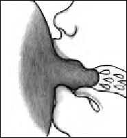 1. Может быть, сосательных движений ребенка будет достаточно, чтобы стимулировать рефлекс напряжения соска, и он вытянется, но вы должны обратить особое внимание на то, как ваш ребенок берет грудь. Лучше всего усиленно заняться обучением ребенка взятию груди сразу после родов, в первые день‑два, прежде чем придет молоко. Набухание груди увеличивает плоскостность или втянутость соска, что затрудняет груди. Свяжитесь с консультантом по грудному вскармливанию перед родами и получите консультацию о действиях в первый день после родов. Часто обучение ребенка правильному положению и правильному взятию груди оказывается достаточным для вытягивания плоского или втянутого соска. И еще раз напоминаем: ребенок питается из околососкового кружка, а не из соска.