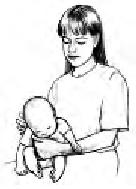 – Положение поверх плеча. Прижмите ребенка к своему плечу так, чтобы ваше плечо упиралось в его животик, затем потрите или похлопайте его по спине. Поддерживайте ребенка для безопасности большим пальцем руки под мышкой. Если ребенок лежит на вашем правом плече, делайте эту поддержку правой рукой.
