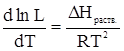 Поскольку растворение – это равновесный процесс, то зависимость растворимости от температуры при постоянном давлении подчиняется уравнению изобары