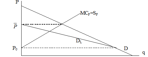 и выше весь рыночный спрос будет удовлетворен фирмами-сателлитами. Напротив, при цене P0 и ниже сателлиты вообще не выйдут на рынок, и весь спрос достанется лидеру. В интервале между этими ценами спрос делится между лидером и сателлитами. Как уже говорилось, спрос на продукт лидера определяется вычитанием предложения сателлитов из общего спроса на продукт всей отрасли.