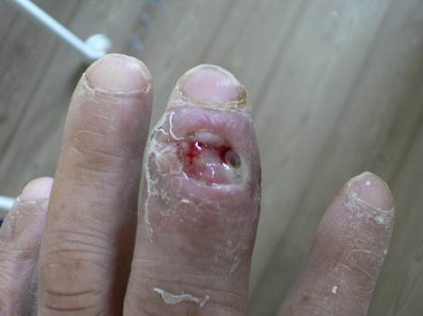 Заключение: Ушибленная гнойная рана дистальной фаланги IV пальца правой кисти.
