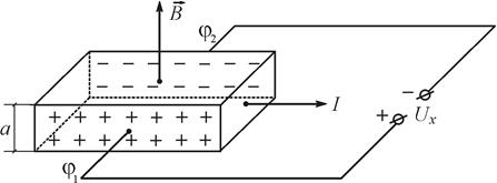 ) при протекании постоянного тока I через проводящую пластину толщиной а, помещенную в магнитное поле, перпендикулярное направлению тока (рисунок 3):