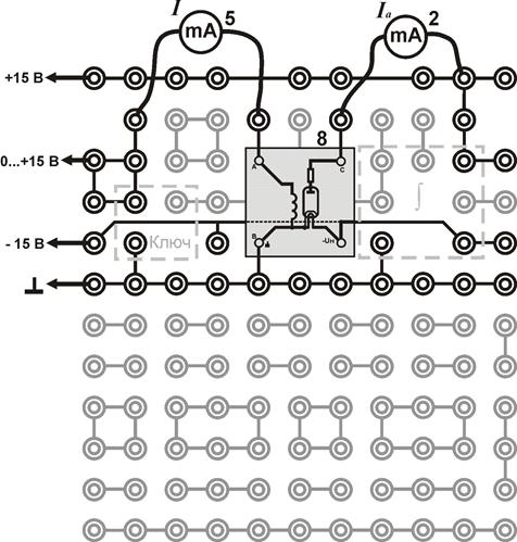 200 mA, входы COM, A); 6 –регулируемый источник постоянного напряжения «0...+15 В»; 7 – напряжение накала катода U н; 8 – миниблок «Магнетрон»