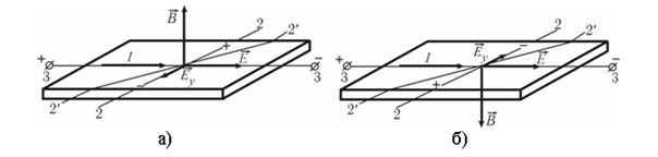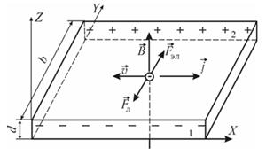вызывающая перераспределение заряда в направлении оси Y (см. рисунок 1). Электроны будут отклоняться к одной из граней, оставляя на противоположной нескомпенсированный положительный заряд. В результате вдоль оси Y появится электрическое поле