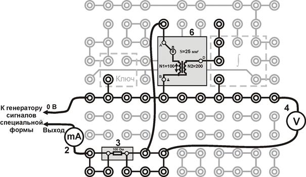 Генератор сигналов специальной формы 1 позволяет изменять напряжение U, а следовательно, и ток I в обмотке тороида. Эти величины измеряют соответственно вольтметром 4 и миллиамперметром 2.