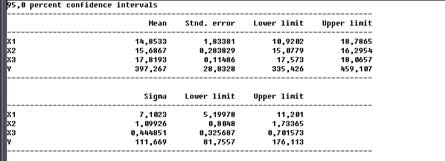 В рабочем окне Multiple – Variable Analysis (рисунок 5) нажмите кнопку табличных опций (вторую слева), в окне табличных опций (рисунок 6) нажмите Confidence Intervals, затем кнопку ОК. На экране появится окно отчёта о доверительных интервалах (рисунок 10), которое содержит следующую информацию: оценки средних, средних квадратических отклонений, оценки соответствующих стандартных ошибок, нижняя и верхняя границы для средних и средних квадратических отклонений.