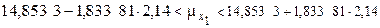 = 2,14 (число степеней свободы n = 15 - 1 = 14, a = 0,05, для двусторонней критической области).