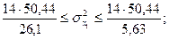 Доверительный интервал для дисперсии генеральной совокупности определяется из соотношения