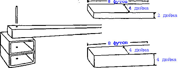| 8 футов = 2,5 м | 4 дюйма = 10 см | 2 дюйма = 5 см. |