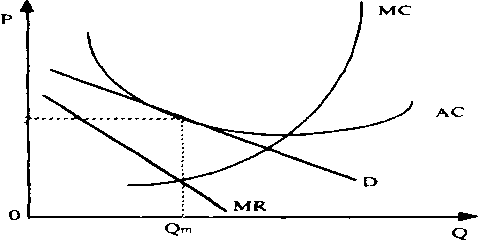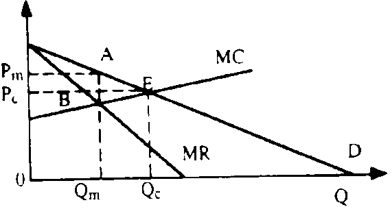 Отрицательный наклон кривой спроса означает, что в условиях монополистической конкуренции производится меньше продукта, чем производила бы конкурентная фирма. Если при совершенной конкуренции производится Qc по цене Рс, то в условиях монопольной конкуренции —Qm, по цене Рm).