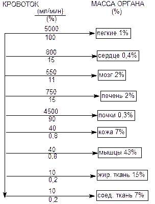 Рисунок 6. Особенности кровоснабжения различных органов и тканей