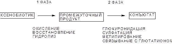Выделяют 2 фазы метаболических превращений чужеродных соединений (рис. 8):