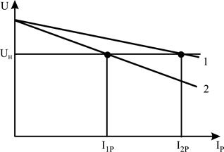 При параллельной работе обоих генераторов напряжения на их зажимах будут одинаковыми, но реактивные токи генераторов будут разными из-за различия их характеристик. Так, при напряжении Uн реактивные токи окажутся различными и будут составлять I1Р и I2P соответственно для первого и второго генераторов.