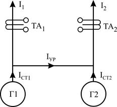 Без принятия дополнительных мер неравномерность распределения реактивной мощности может достигать десятков процентов. Простейшей из этих мер, например в системах с СГ, являются уравнительные соединения между статорными обмотками генераторов и первичными обмотками токовых трансформаторов (рисунок 6).