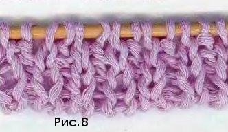 После провязывания 4 рядов двойным вязанием продолжайте вязать резинку 1x1, т.е. *1 лицевая, 1 изнаночная* (рис.8)