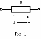 На рисунке 1 показан участок электрической цепи, представляющей собой резистор R, на концах которого действует напряжение U(разность электрических потенциалов) и по которому протекает электрический ток I.
