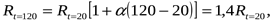 0,004 град-1. Например, приt0= 20°С и повышении температуры до величиныt= 120°С (рабочая температура большинства электротехнических установок) согласно выражению (3)