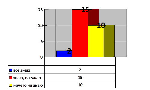 15 человек ответили – «знаю, но мало» - 55.6%;10 человек ответили – «ничего не знаю» - 37%.